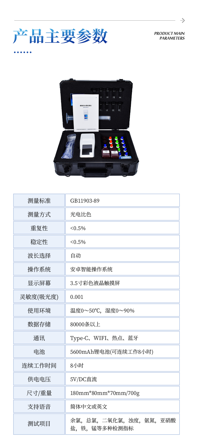 余氯 | 0~10 mg/L | HJ586-2010 | 光电比色 | ≤5% | <0.5% |