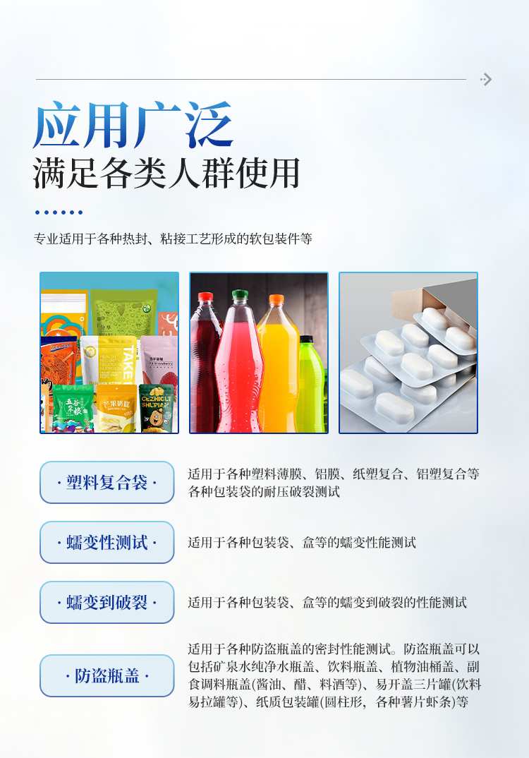 泡罩包装破裂测试 | 适用于各种泡罩包装的耐压测试 |