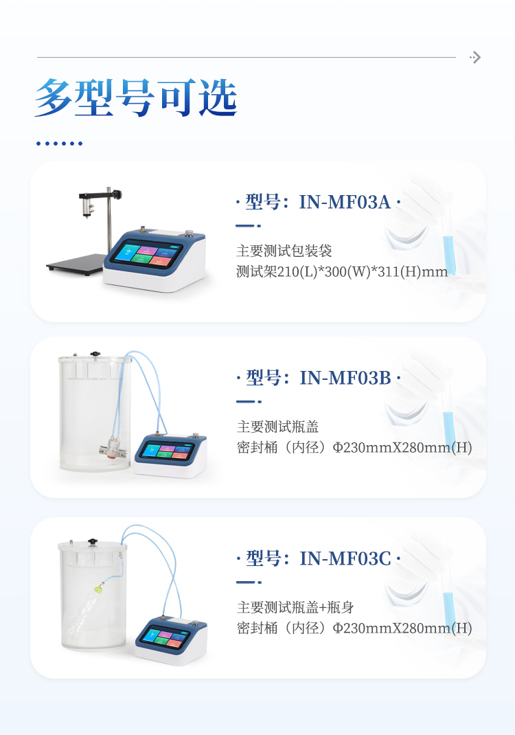 泄漏与密封强度测试仪,专业适用于各种热封、粘接工艺形成的软包装件、无菌包装件等各封边的封口强度、热封质量、以及整袋胀破压力、密封泄漏性能的量化测定;对软包装袋所使用材料的抗压强度、耐破强度等指标分析;各种塑料防盗瓶盖密封性能、瓶盖连接脱扣强度、材料的应力强度的量化测定;瓶体密封性、抗压性、耐破性等评估分析。通过正压法来进行测试,模拟实际使用环境下的密封强度、泄漏性能和耐压极限,为各行业的包装质量管控提供可靠的依据。
