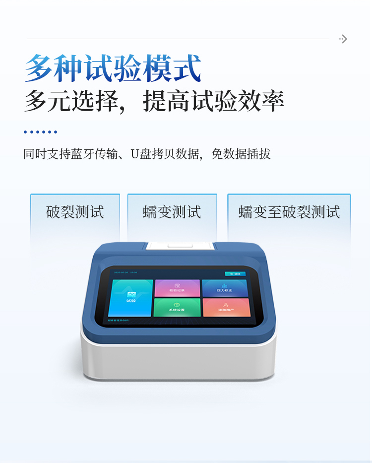 5. 提供破裂测试、蠕变测试、蠕变至破裂测试试验模式;