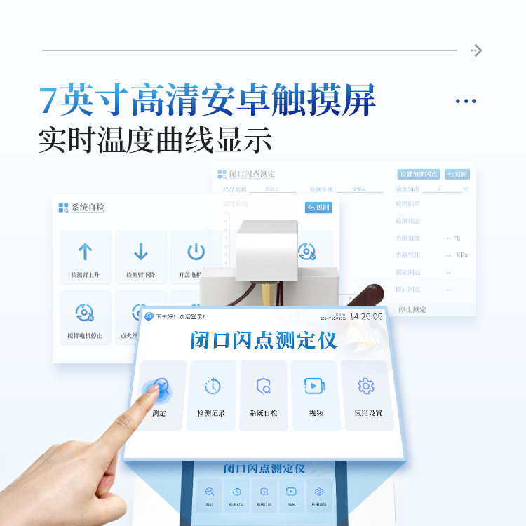 简要描述: 全自动闭口闪点测定仪是一种专门用于测量石油产品、化学溶剂等易燃液体在密闭容器中,与空气形成可燃气体混合物后遇到火源时产生瞬间闪火的最低温度的仪器;广泛适用于电力、石油、化工、商检、科研等,以确保材料的安全储存、运输和使用。仪器按照GB/T 261-2021方法规定的升温曲线加热,温度接近预期闪点值时自动点火,当出现闪点时仪器自动锁定结果,并显示和打印,同时启动风机自动对加热器进行冷却。