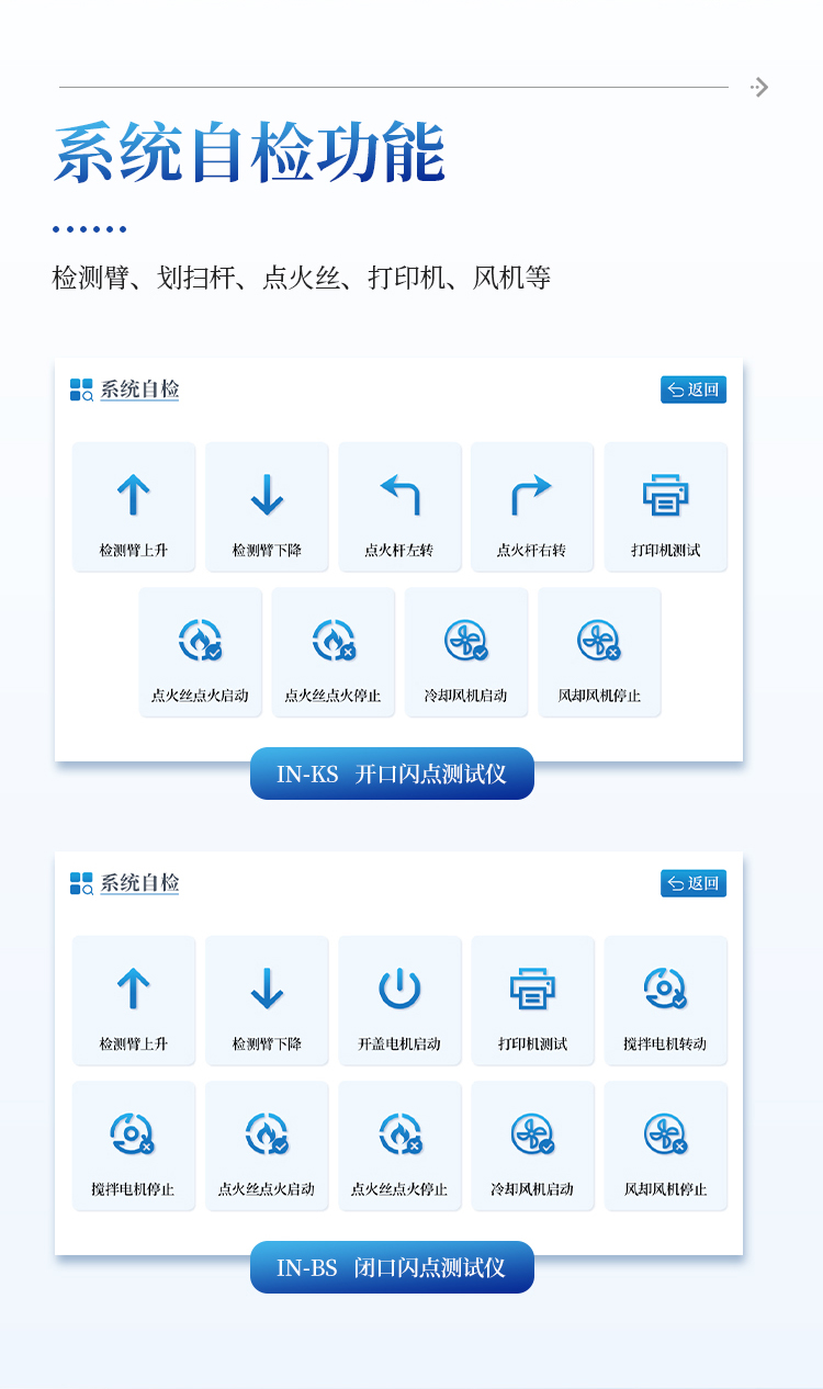 自检功能          检测臂、划扫杆、点火丝、打印机、风机等