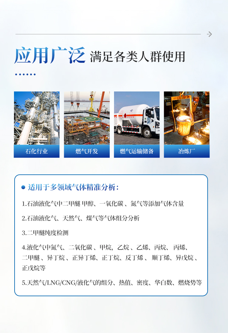 LPG LNG CNG加气站、油田气、煤层气、矿井气、页岩气、燃气管道运输公司、燃气运输公司、燃气储备站、煤改气企业、LNG点供、燃气具生产企业、石油炼化、焦化厂、冶炼厂和供气站等众多行业。