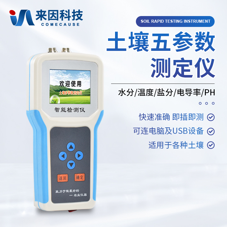 土壤水分温度盐分PH测定仪采用一体化结构设计,可快速准确测量土壤中含水量、温度、电导率(盐分)、酸碱度,可对多处样地、不同土壤深度的水分含量温度盐分和PH进行快速检测和长期连续监测。