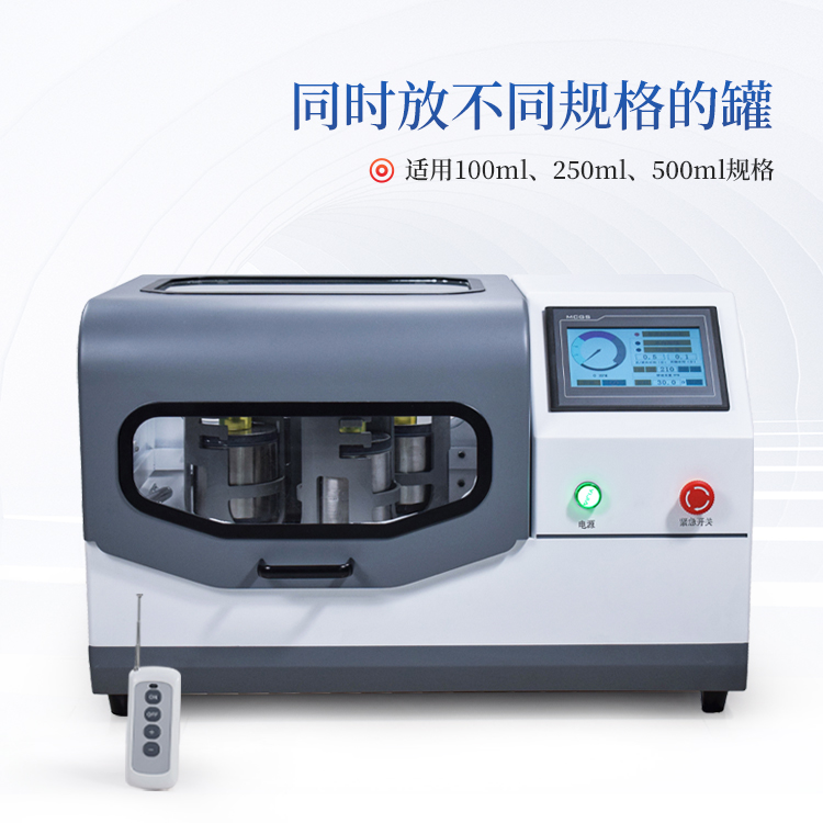 适用研磨罐:本机是新款通用型,100ml、250ml、500ml、1000ml四种规格研磨罐均可使用,可根据客户需求同时放不同规格的罐;对角对称即可(4个研磨罐为一套)。