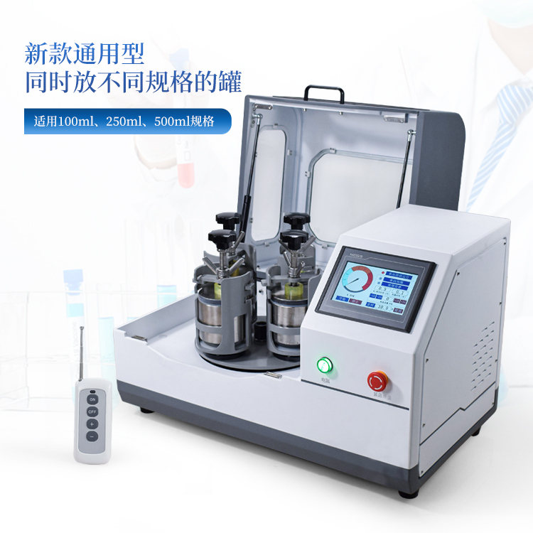 适用研磨罐:本机是新款通用型,50ml、100ml、250ml、500ml、1000ml、2000ml六种规格研磨罐均可使用,可根据客户需求同时放不同规格的罐;对角对称即可(4个研磨罐为一套)。