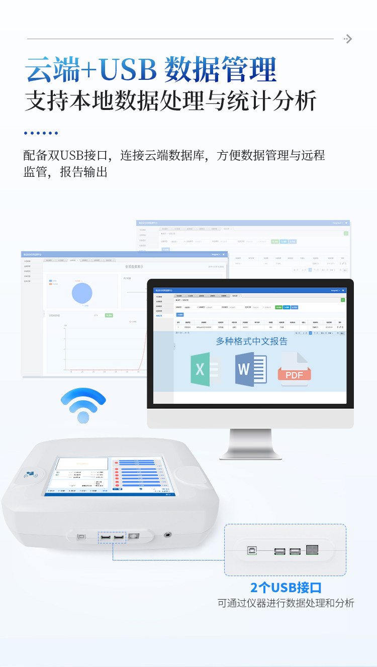 6、高速有线/无线网络及蓝牙,构建完善的数据监控平台,实现数据实时上传、远程查询、统计分析和监管协同。