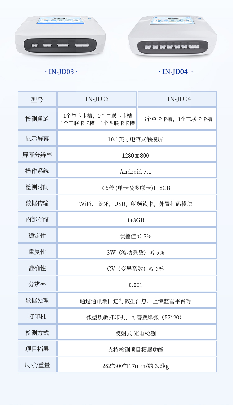 11、检测时间:< 5秒 (单卡及多联卡);可对样本进行胶体金定性/半定量检测。