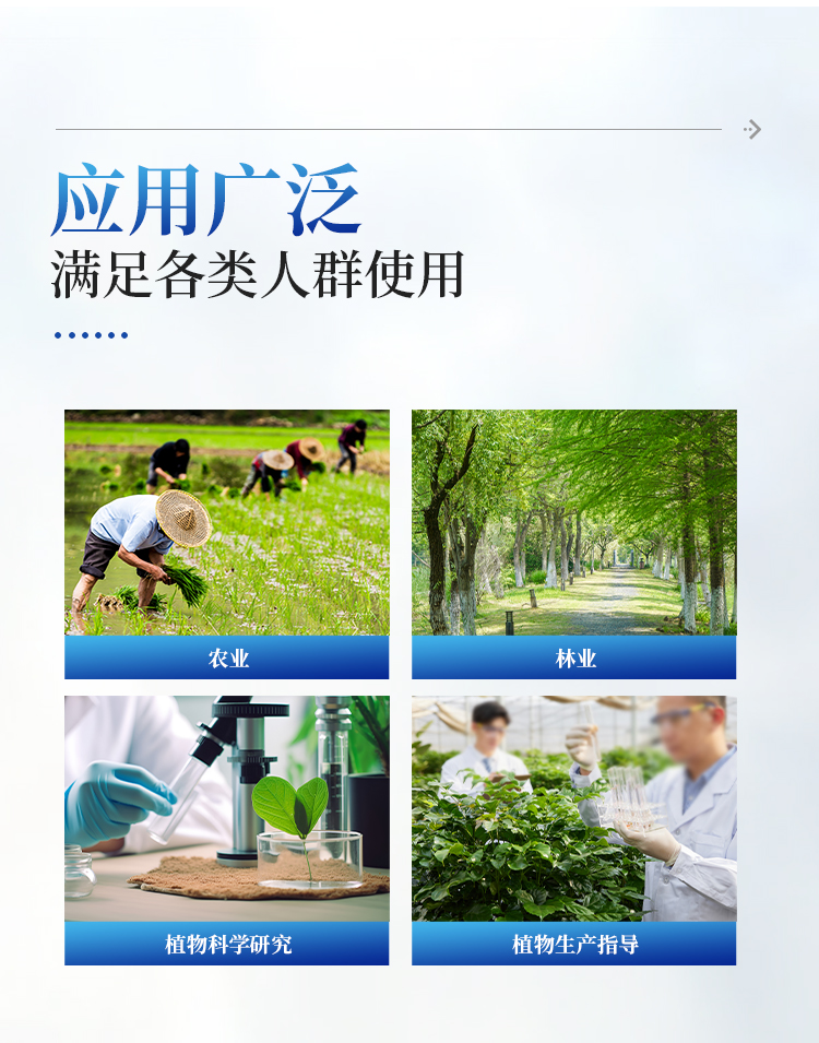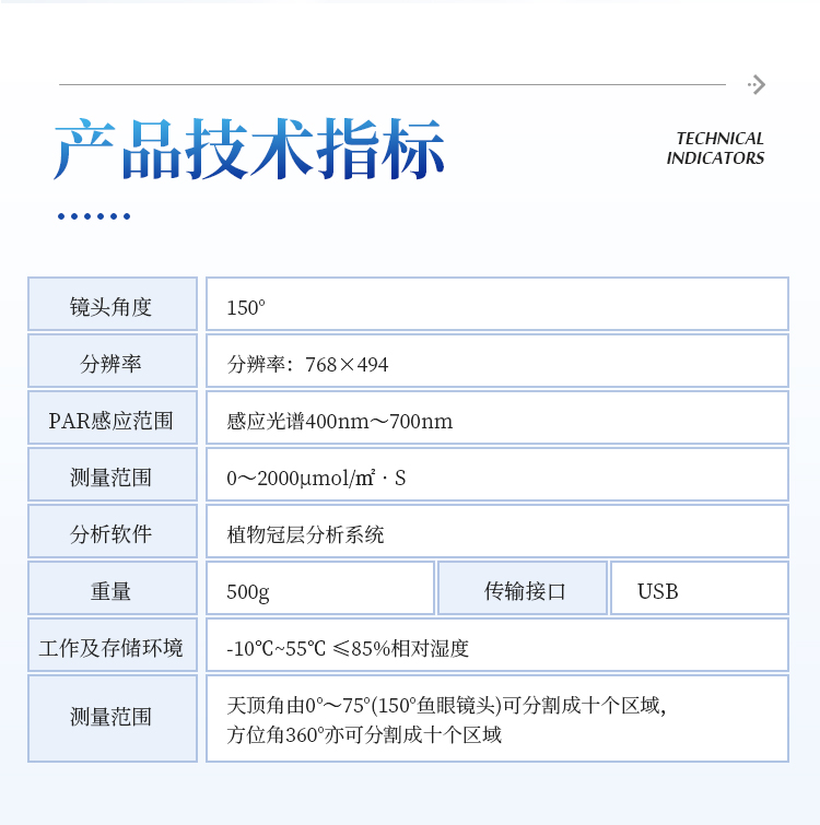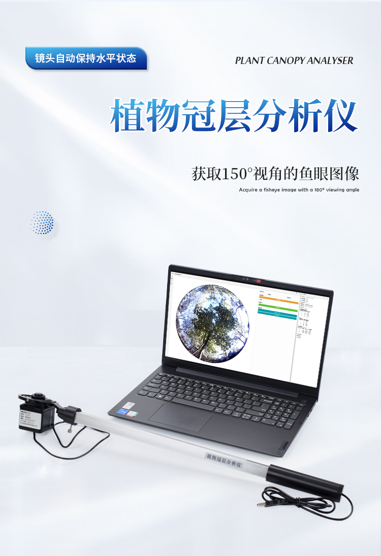 鱼眼镜头可自动保持水平状态:专门为植物冠层结构测量设计的小型鱼眼摄像镜头安装在手持式万向平衡接头上,可自动保持镜头处于水平状态,无需三角架;