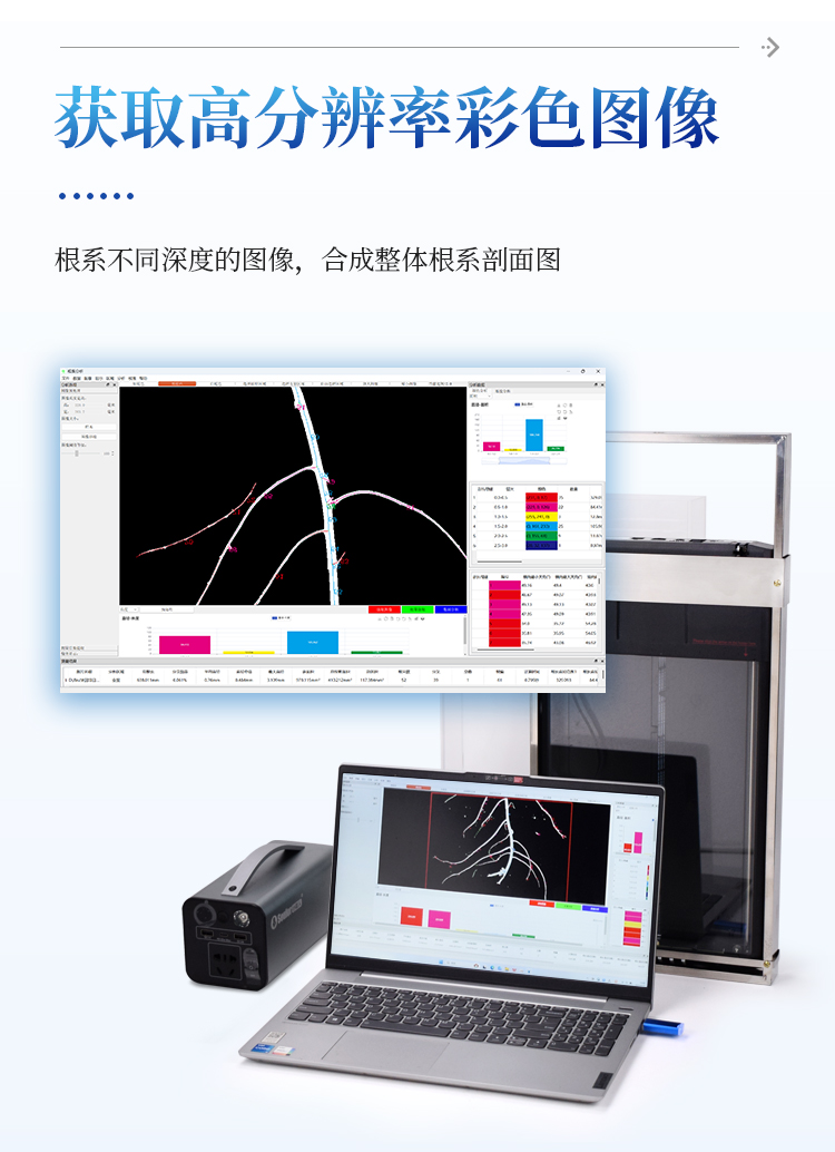 可获取根系不同深度的图像,合成整体根系剖面图;