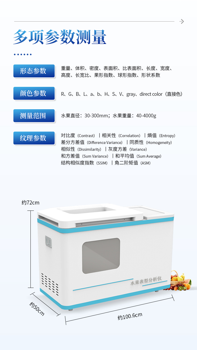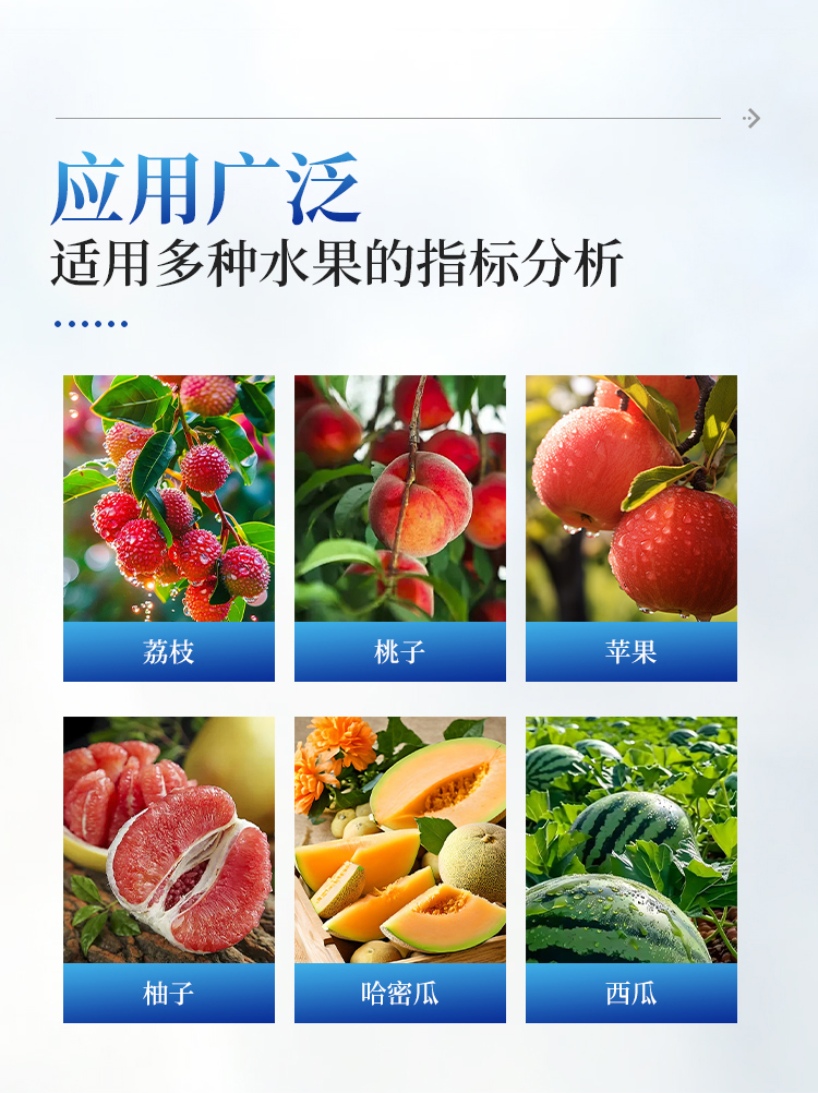 1、适用于荔枝、桃子、苹果、柚子、哈密瓜、西瓜等水果的指标分析;